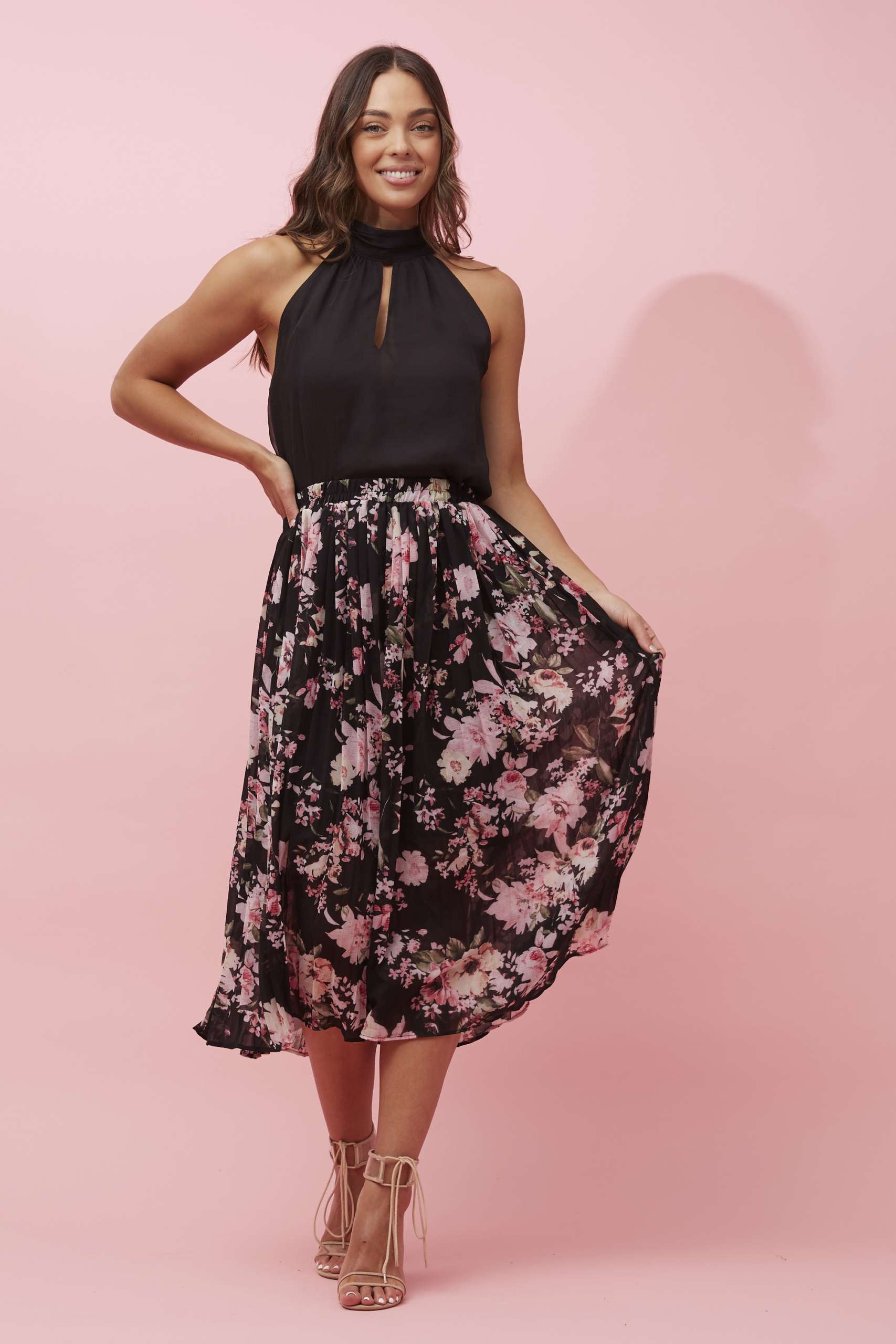 Floral Pleated Midi Skirt – S731888