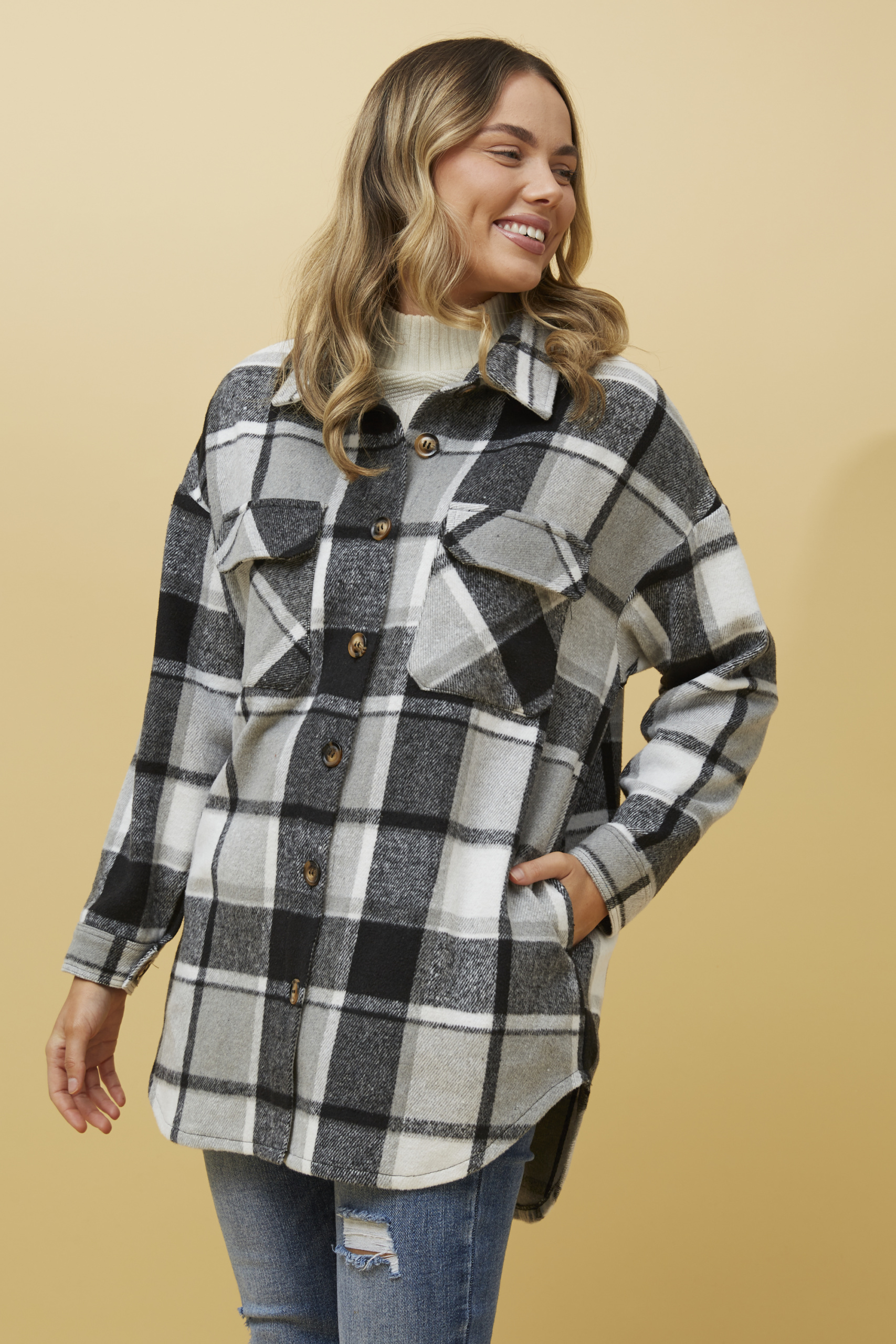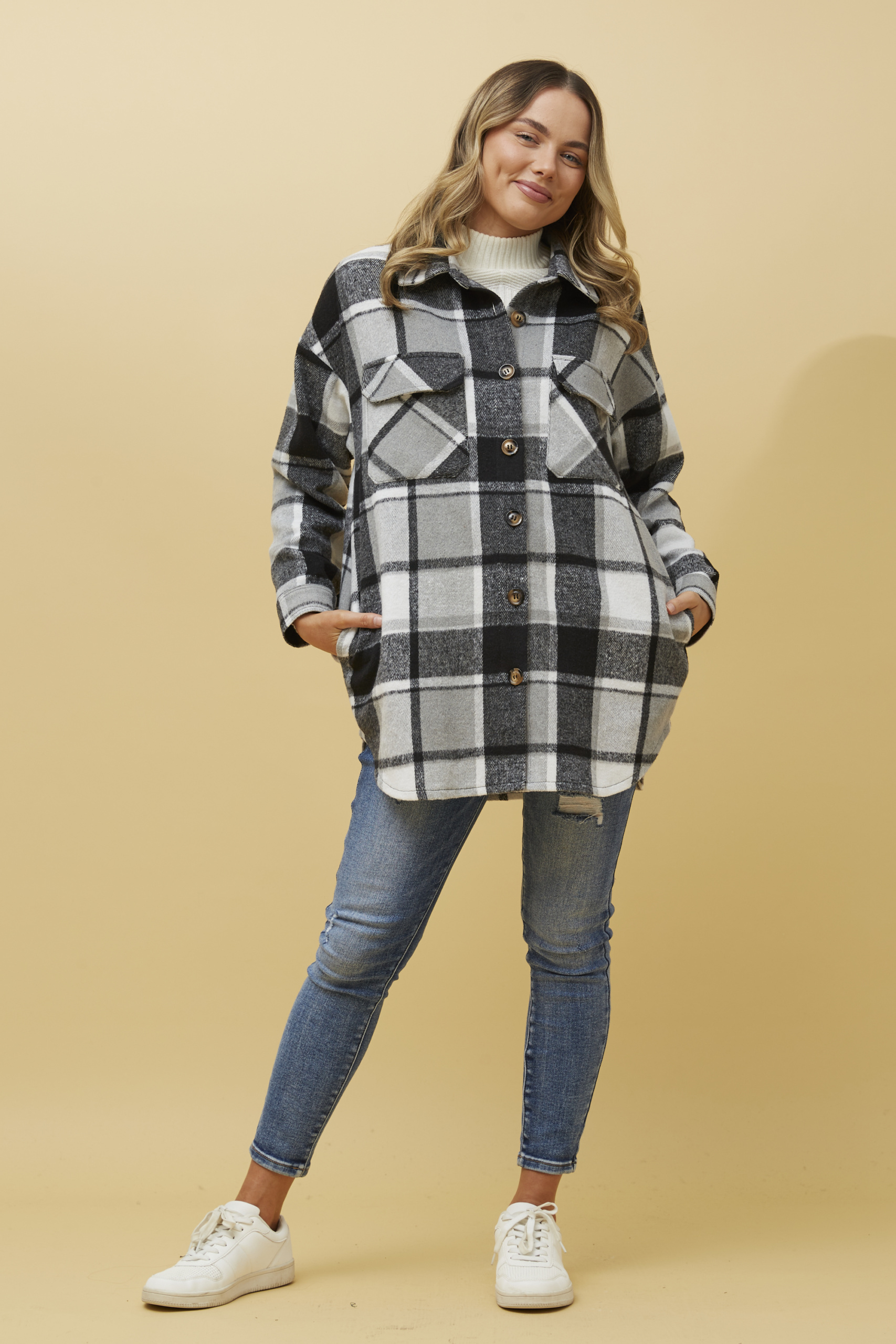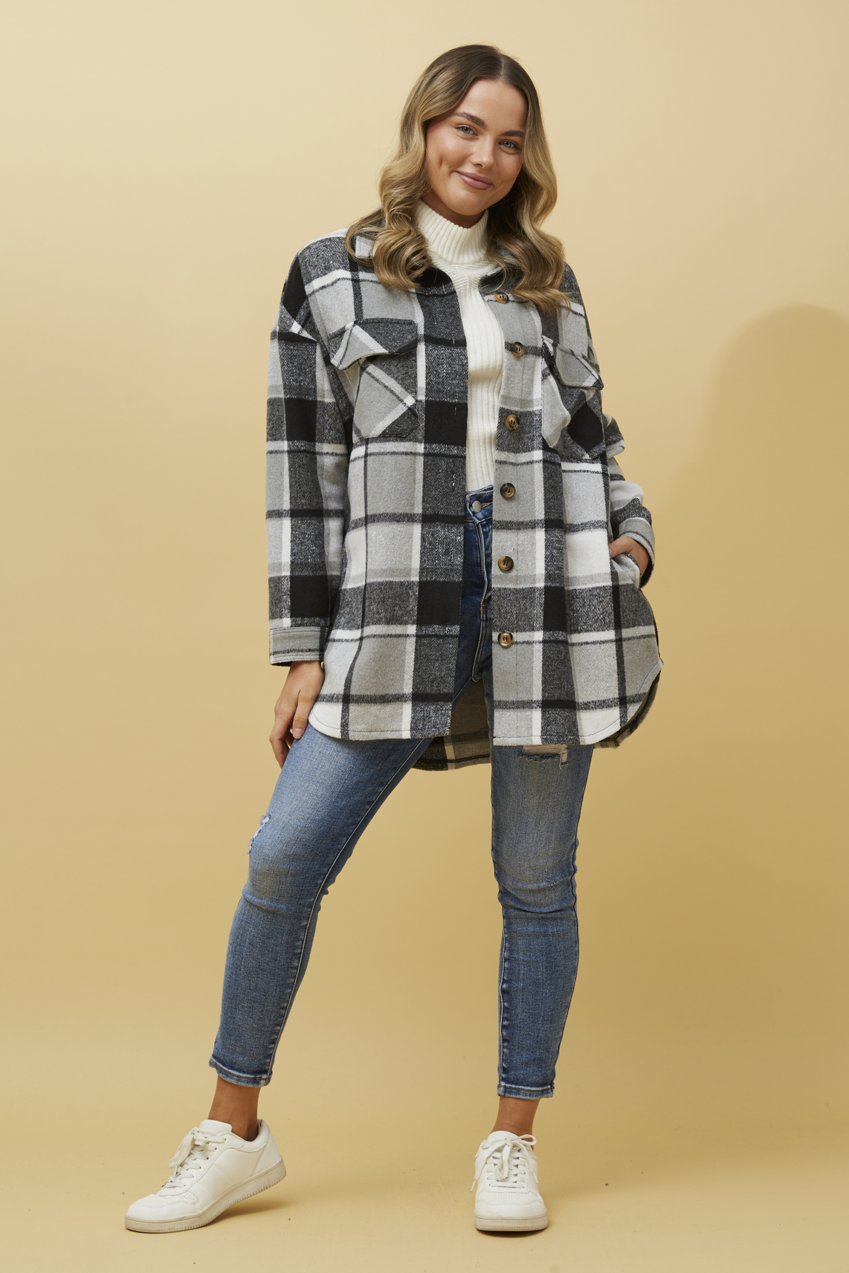 Home / Winter / Wholesale Women's Coats & Jackets / Check Print Shacket – J512077 Check Print Shacket – J512077 Category: Wholesale Women's Coats & Jackets Tags: check, flannel, overshirt, patch, pockets, print, shacket, winter Product ID: 14011 Related products Quick View Faux Suede Trench Coat – CO512378 Buy now Quick ViewMore colours available Quick View Faux Fur Bomber Jacket – J515278 Buy now Quick View Quick View Sequin Jacket – J511554 Buy now Quick ViewMore colours available Quick View Chain Print Blazer – J515041 Buy now Quick View