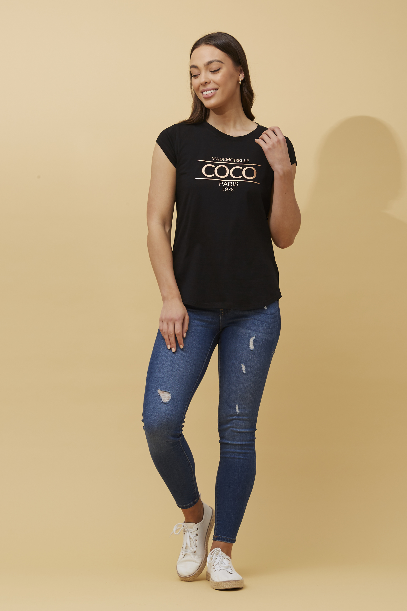 Home / Summer / Wholesale Women's Tops / Coco Graphic Tee – T513352 Coco Graphic Tee – T513352 Category: Wholesale Women's Tops Tags: casual, coco, graphic, summer, t-shirt, tee, tshirt Product ID: 12637 Related products Quick View Patchwork Print Blouse – T514759 Buy now Quick View Quick View Patchwork Print Shirt – T515574 Buy now Quick ViewMore colours available Quick View Leaf Print Double Layered Tunic – T511568 Buy now Quick View Quick View Floral Sleeveless Top – T511670 Buy now Quick ViewMore colours available