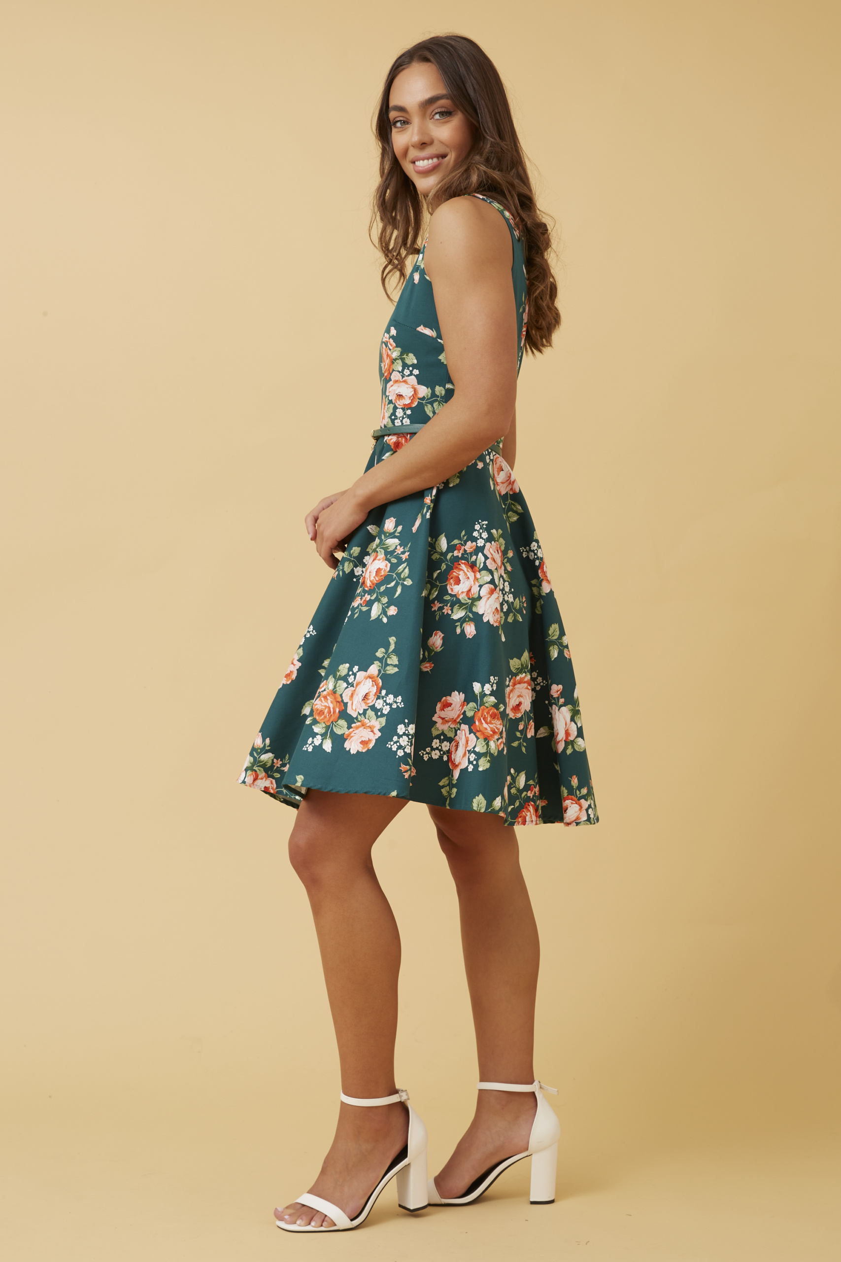 Tags: belt, dress, event, floral, mini, occasion, outdoor, party, pockets, short, skater, sleeveless, summer